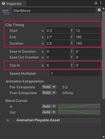 If you trim an Animation clip, an Audio clip, or a Control clip, this selects the portion of the source asset that the clip uses.