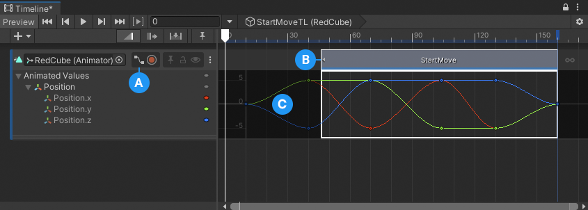 For Control clips, the properties that determine whether the extra clip area holds or loops depends on whether the clip controls a Sub-Timeline instance, Particle System, Prefab instance, or an ITimeControl Script.